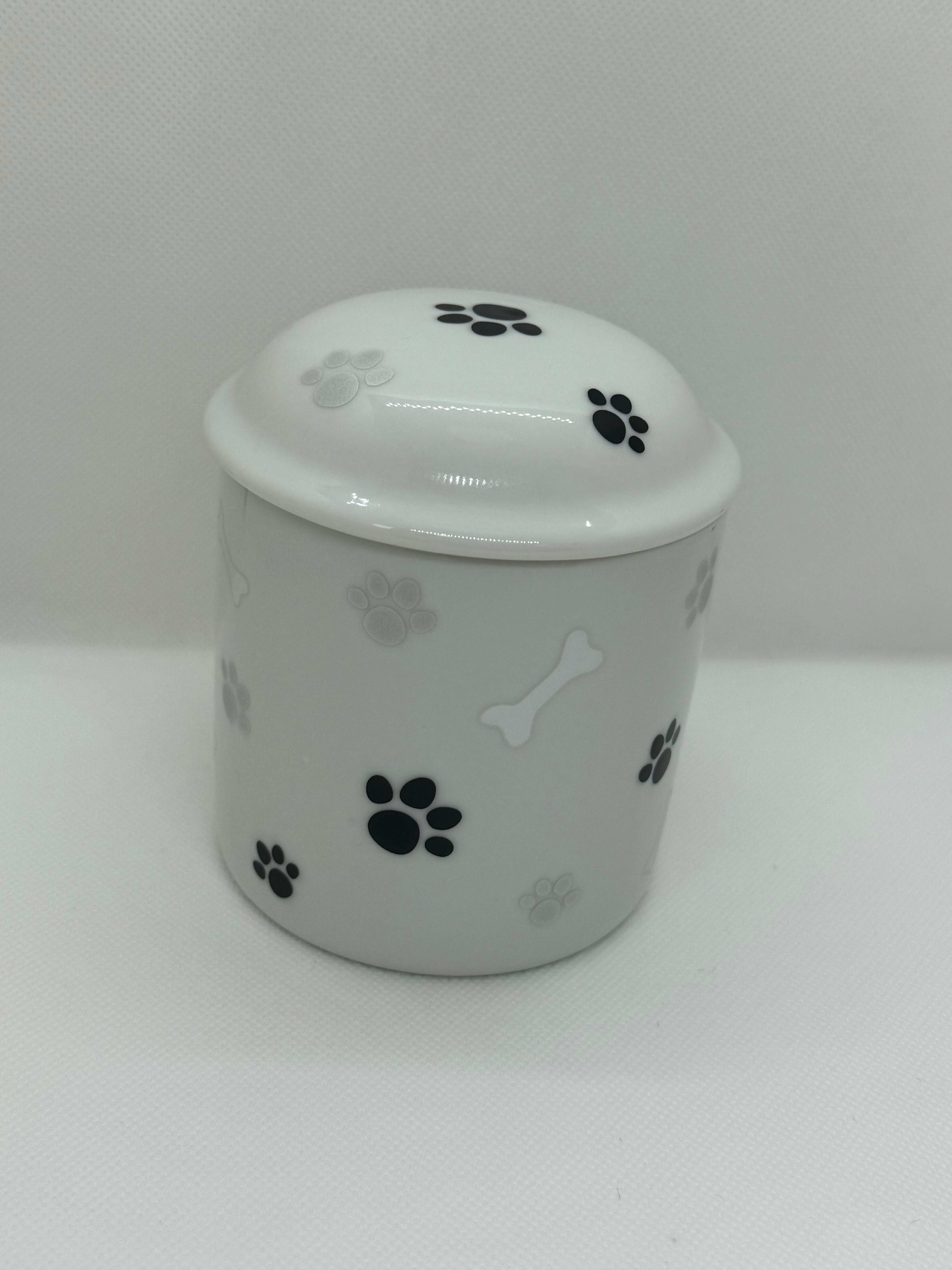 小さな足跡がついているお骨壷です。まるでそこを歩いてるよう。カバーなしでそのまま飾って頂けるかわいいお骨壷です。大きさは3寸になります。